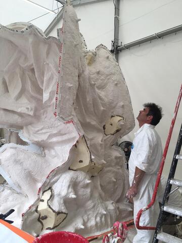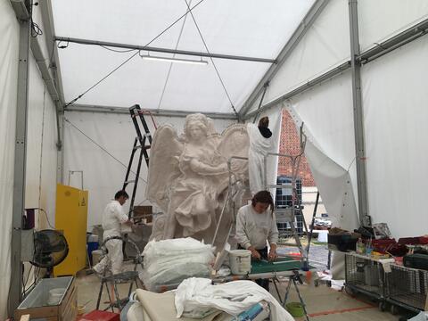 Le chantier du moulage de la" Renommée du roi" au Château de Versailles