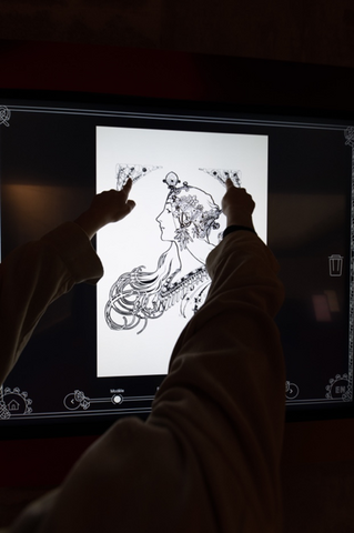 Prolongez votre voyage au pays de l'Art nouveau et devenez styliste en créant votre propre égérie sur les écrans tactiles.